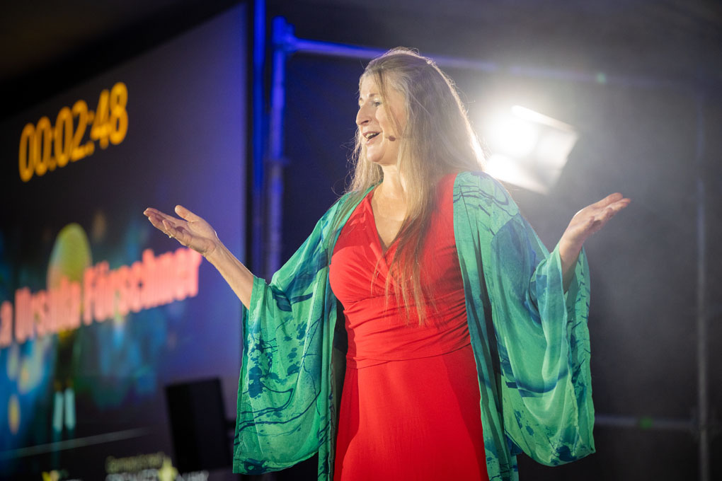 Mit eindrucksvollen Bildern, klarer Sprache und Tiefe begeistert Ursula Förschner ihr Publikum. Ihre Rede macht Mut, alte Fesseln abzustreifen.