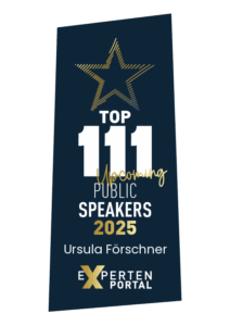 Darüber hinaus wurde Ursula Förschner vom Expertenportal als eine der TOP 111 Upcoming Public Speakers 2025 ausgezeichnet.